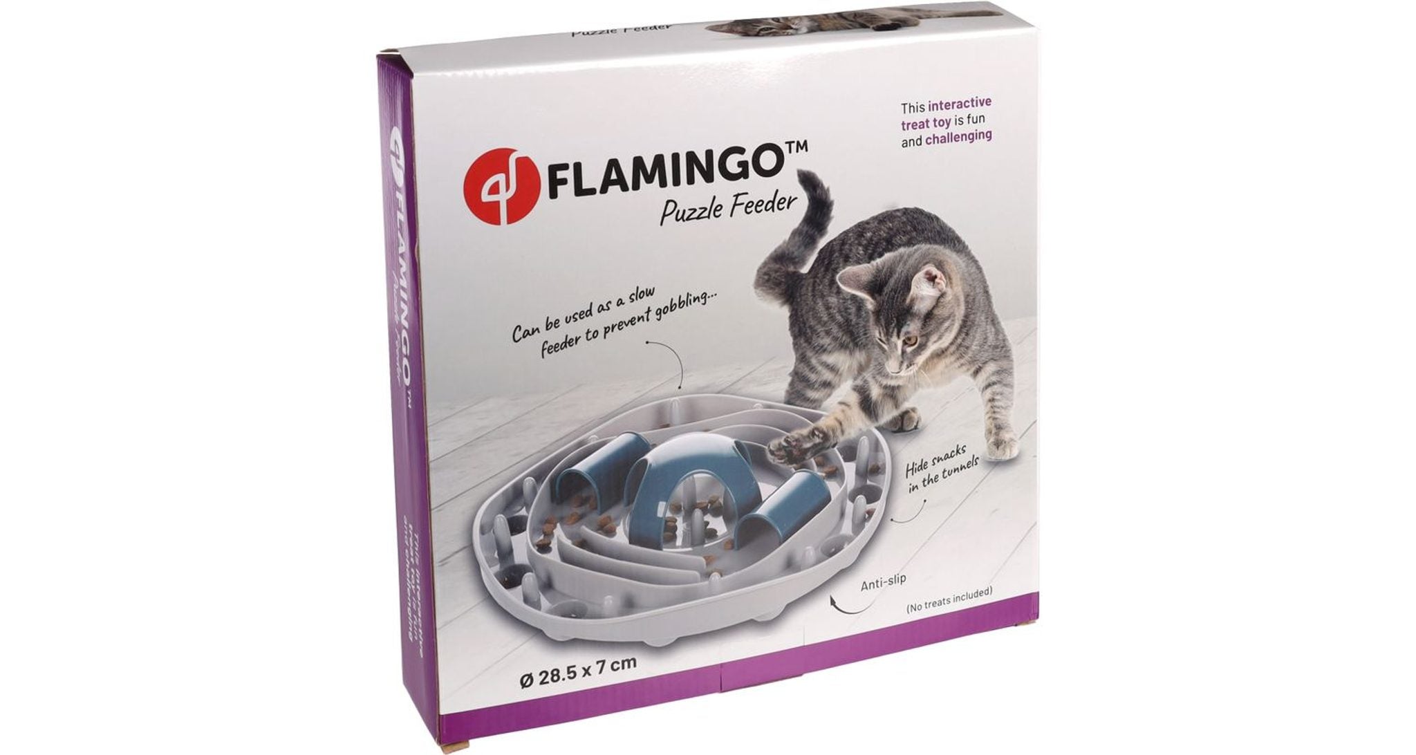 Jautra Flamingo Hanto gardumu mīkla ar neslīdošu virsmu piedāvā jūsu mājdzīvniekam izaicinājumu, kas ir jautrs un interaktīvs. Dēlis sastāv no tapām un tuneļiem, kur var paslēpt gardumus un iecienītākos našķus, tādējādi jūsu mājdzīvnieks izmantos rotaļlietu fiziski un garīgi. Tas arī palīdz mazināt garlaicību jautram veidā un var tikt izmantots kā lēnas barošanas palīglīdzeklis, lai novērstu rīšanu.