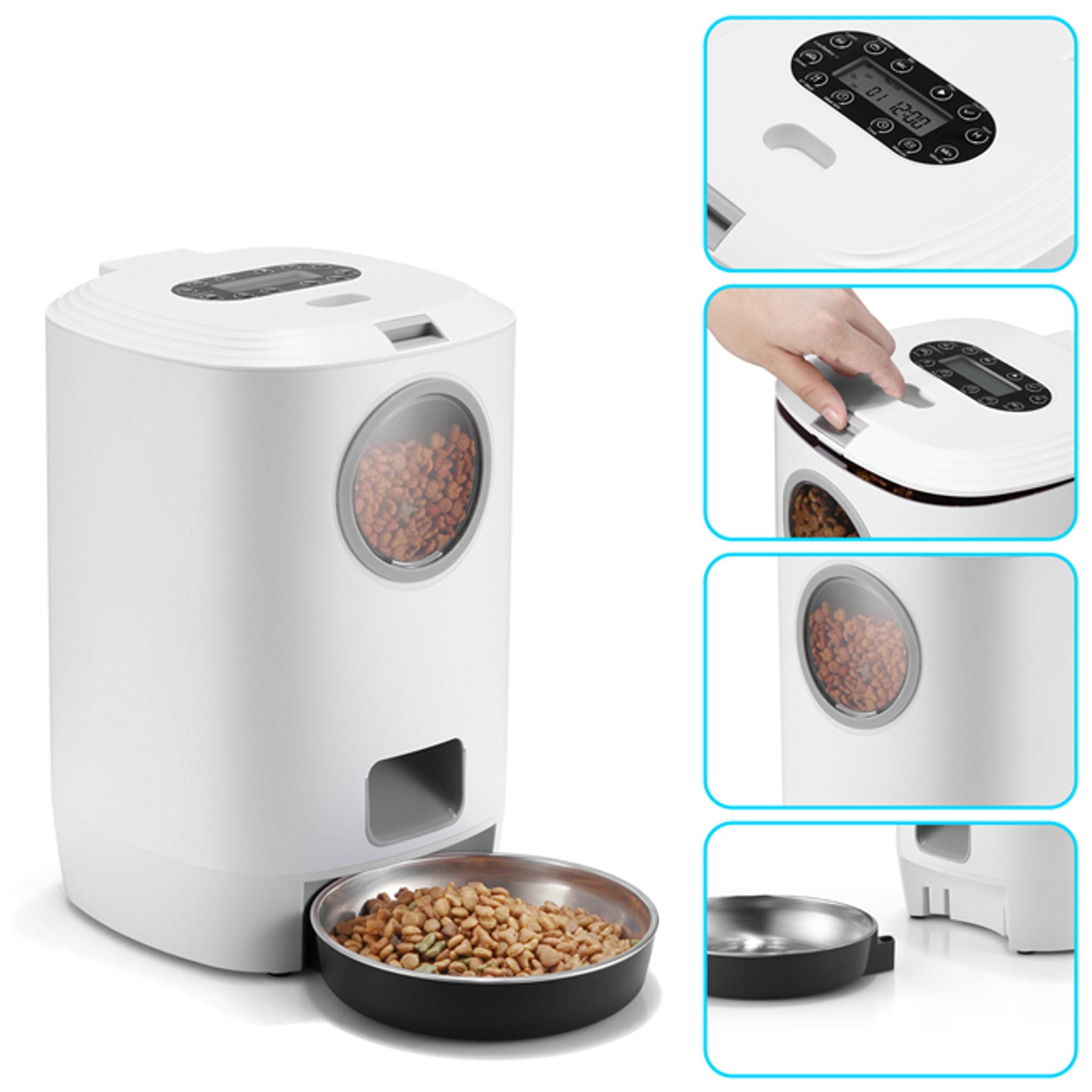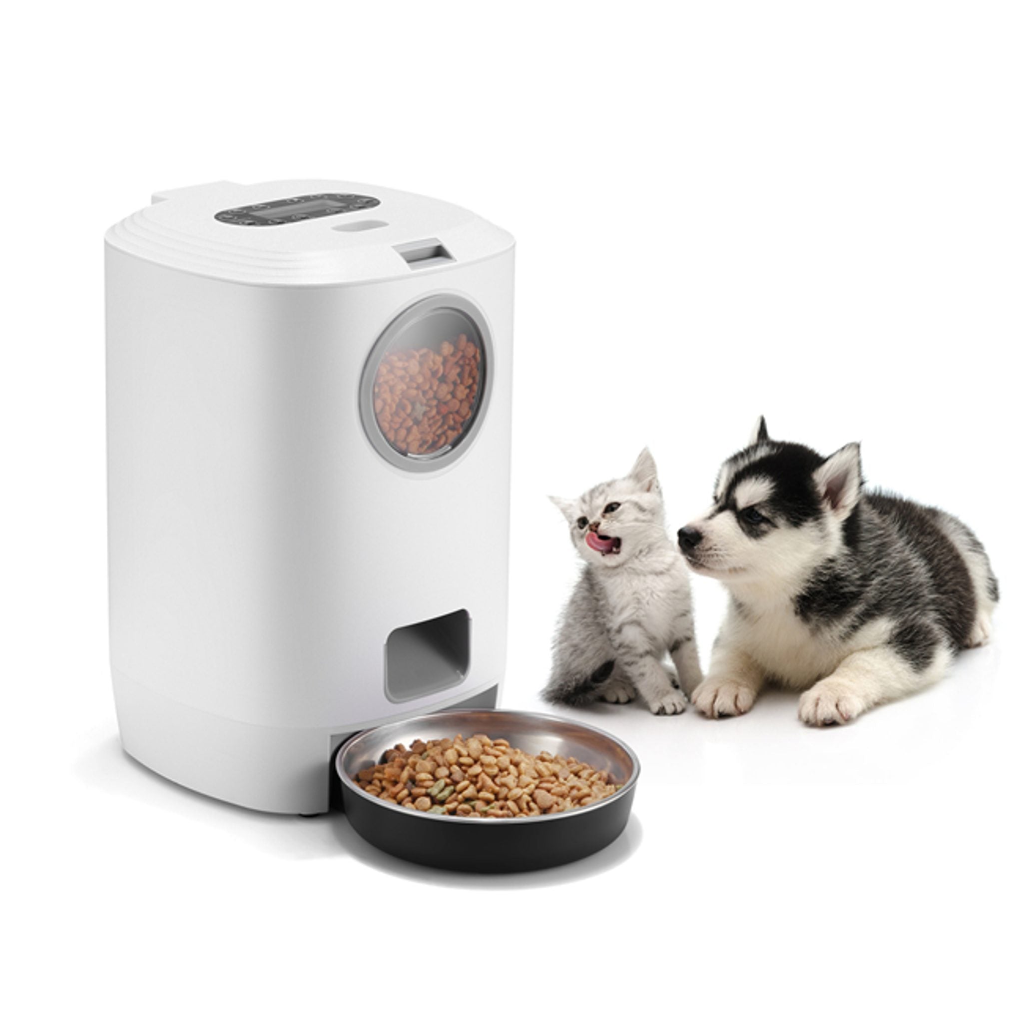 Petwant ir unikāls automātisks mājdzīvnieku barotamais, kas paredzēts kaķiem un maziem suņiem. Šis viedais barotamais nodrošina jūsu mājdzīvniekus ar viņu iecienītāko barību visas dienas garumā, kad jūs neesat mājās. Pateicoties barotamajam, jūsu mājdzīvnieks ēdīs regulāri, neēdot pārāk daudz, un tieši tik daudz, cik jūs manuāli iestatīsit uz skaidrās LCD displeja. Šis viedais barotamais ir izgatavots no ABS plastmasas, kas ir videi draudzīga, tāpēc jums nav jāuztraucas par kaitīgām vielām. Vieglākai apstrādei un tīrīšanai barības konteiners, kā arī papildu bļoda un paplāte ir noņemami. Caurspīdīgais logs, kas kalpo labākai pārskata nodrošināšanai par barības līmeni, ir izgatavots no plastmasas. Petwant barotamajam ir USB uzlādes kabelis; strāvas padeves pārtraukuma gadījumā var izmantot rezerves akumulatora barošanas avotu: 3x D baterijas (baterijas nav iekļautas).