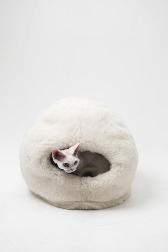 Ligzdiņa, kuru viņi nekad nevēlēsies atstāt – pūkaina, dabīga un bez toksīniem, šī aitas ādas mājiņa ir ideāla atpūtas vieta kaķiem un maziem suņiem.
