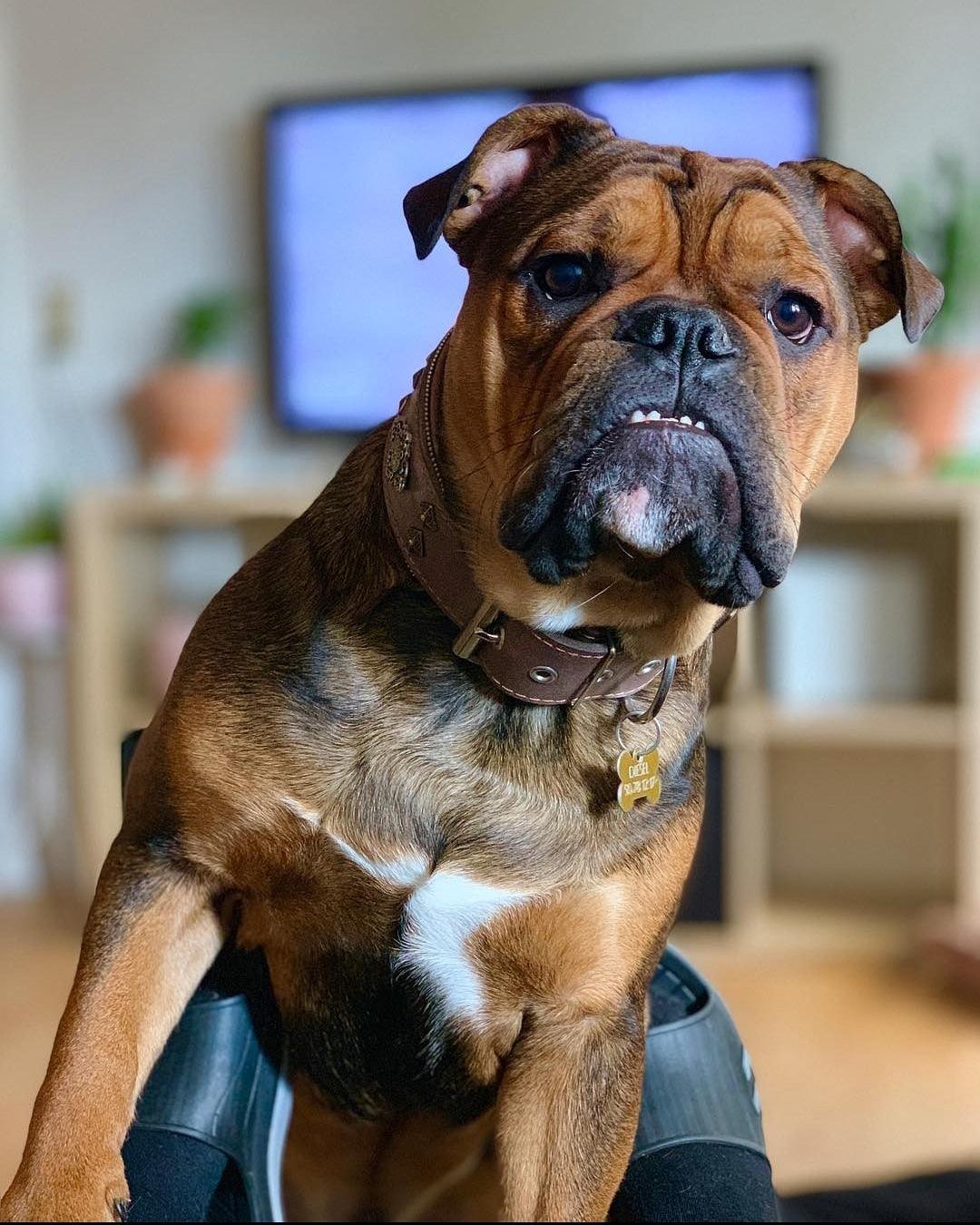 In addition to that it has a decorative rivet on the handle and 2 rivets on the snap piece which makes it stand out and give you the unique feeling you and your dog deserve.