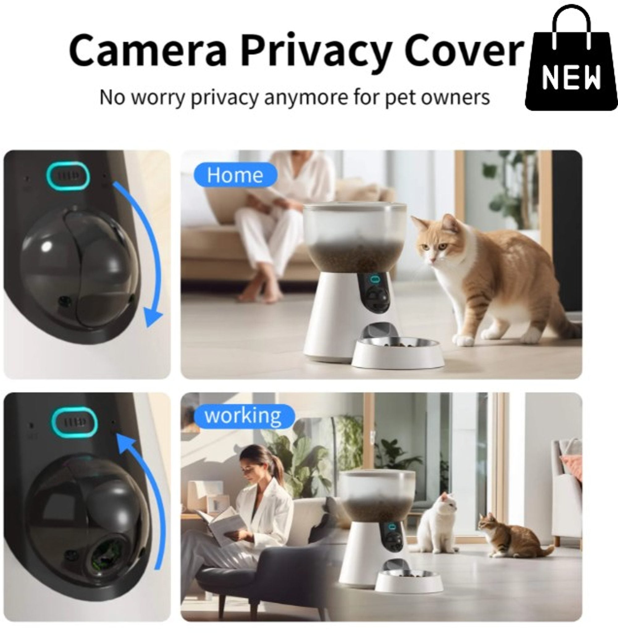 Vēl lielākai ērtībai dozatoru var vadīt, izmantojot lietotni. Tā ļauj programmēt barošanas laikus un rūpēties par sava mājdzīvnieka veselīgajiem paradumiem. Lietotne jūs arī informēs, ja dozators ir tukšs vai ir radusies kļūda. Varat koplietot piekļuvi ierīcei ar citiem mājsaimniecības locekļiem. Vai vēlaties uzzināt, ko jūsu mīlulis dara, kad jūs neesat mājās? Ar ieburvēto kameru un lietotni ierakstiet līdz 10 sekunžu garus video ar neticamu 1080P HD izšķirtspēju. Varat arī ierakstīt savu balsi, lai izsauktu savu mājdzīvnieku barošanas laikā.
